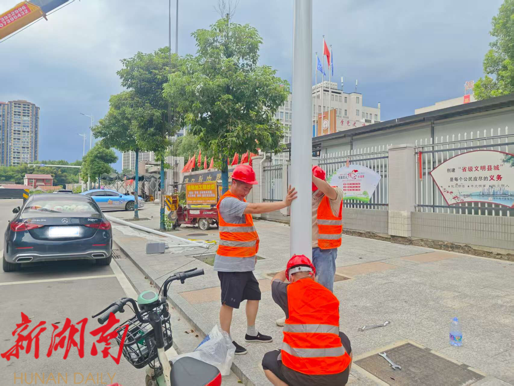 洞口融媒9月2日讯(记者:邓贝乐) 近日,洞口县城管局顺利完成泰龙路路段路灯安装工程。夜幕降临时,县中医医院周边泰龙路段的崭新高杆路灯次第亮起,不仅照亮桥面与十字路口,更切实便利群众夜间出行,传递城市温暖。