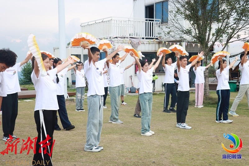 营员们与麻阳苗族自治县民族小学的朋友们共跳麻阳花灯戏和新疆舞