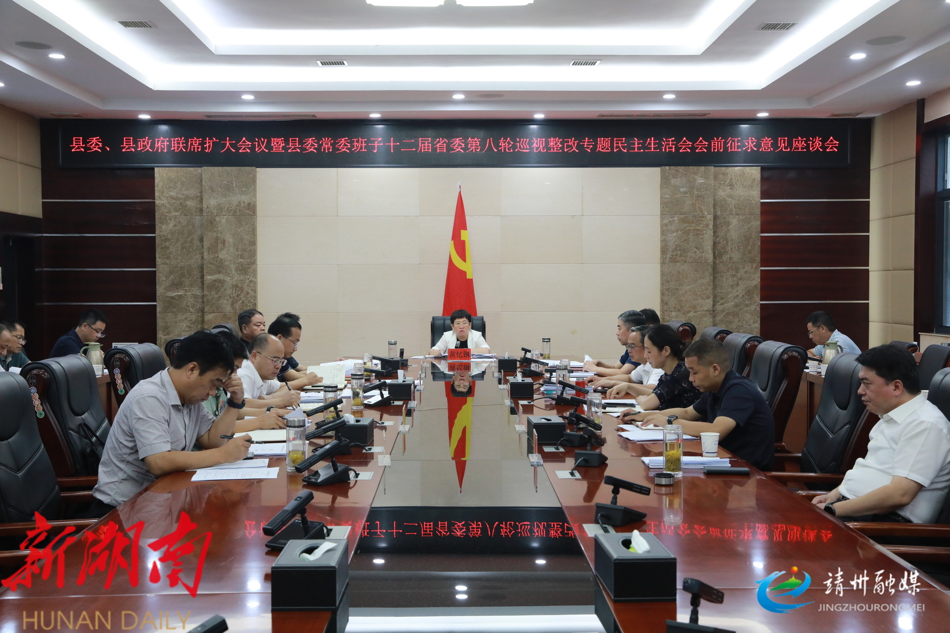 靖州融媒9月1日讯 (记者 胡耀文 实习记者 夏源懋)9月1日,靖州苗族侗族自治县委书记黄忆钢主持召开县委、县政府联席扩大会议暨县委常委班子十二届省委第八轮巡视整改专题民主生活会会前征求意见座谈会。县委副书记、县长张艳阳,县人大常委会主任杨景明,县政协主席姜小华参加。