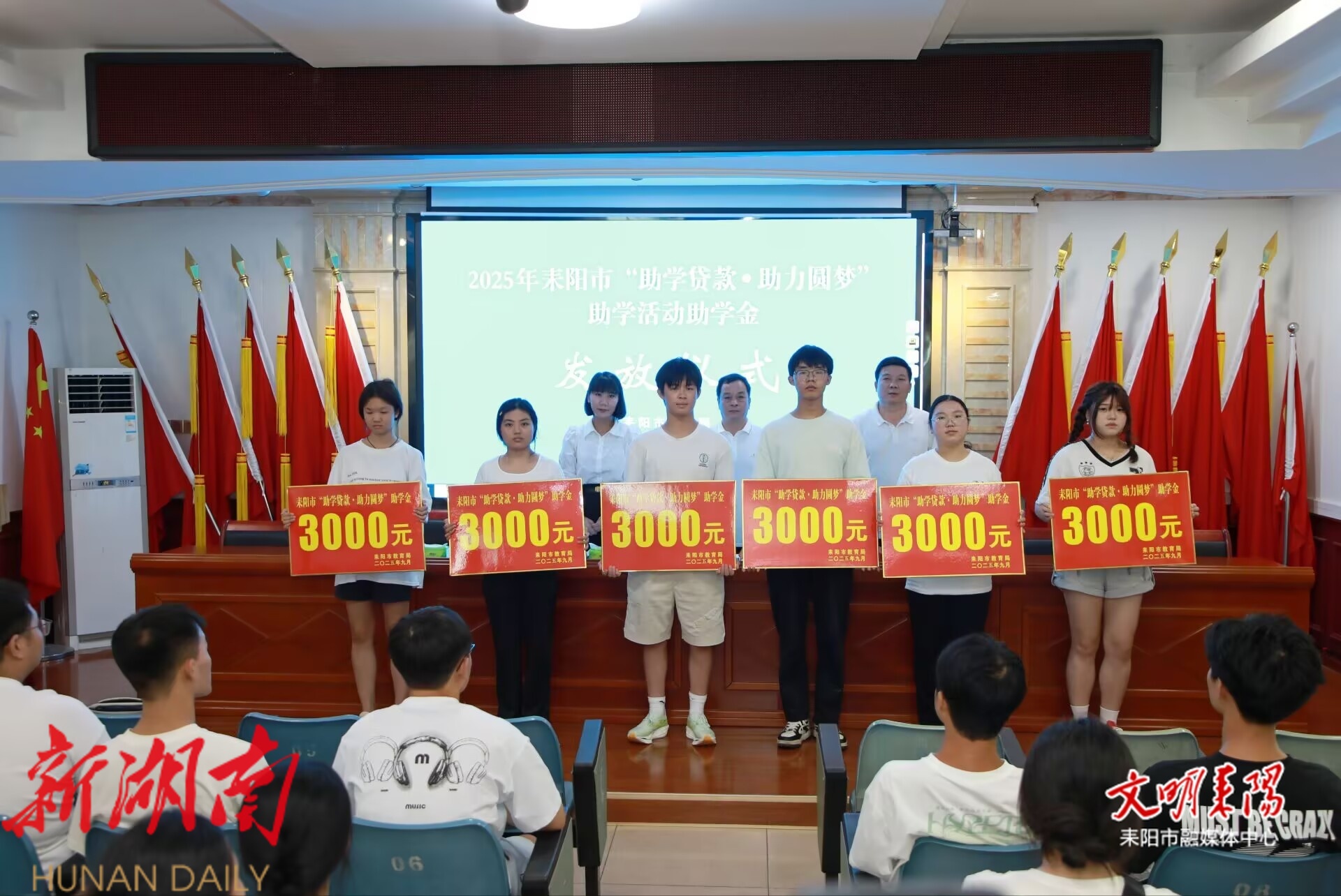 此外,活动还特别为8名受助学生代表发放了“滋蕙计划”助学金。自2021年起,耒阳市已连续5年在暑期举办“助学贷款·助力圆梦”助学活动,累计发放助学金69.9万元,已资助279名家庭经济困难大学新生逐梦前行,用实际行动诠释着对教育事业的支持与对学子梦想的守护。