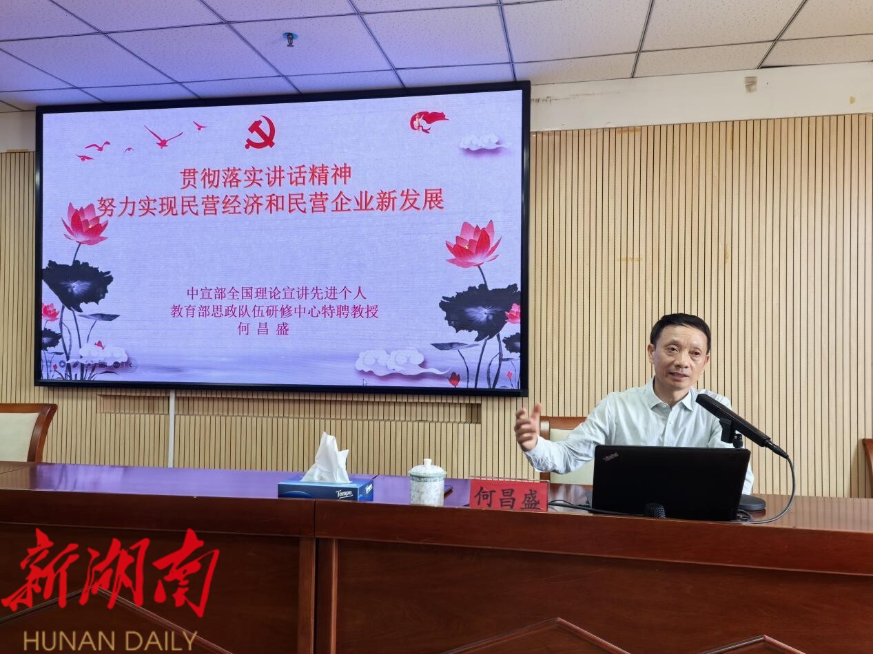永州市委党校何昌盛教授以《贯彻落实讲话精神推动民营经济高质量发展》为题,结合长沙民营经济发展实际,系统阐述了新时代背景下如何通过主动担当作为,实现“强省会”等战略。聚焦政策要素保障、金融要素支撑、强化人才要素集聚,通过整合资源要素、优化营商环境、激发市场活力等具体路径,为长沙推动民营经济高质量发展提供了具有操作性的路线图。