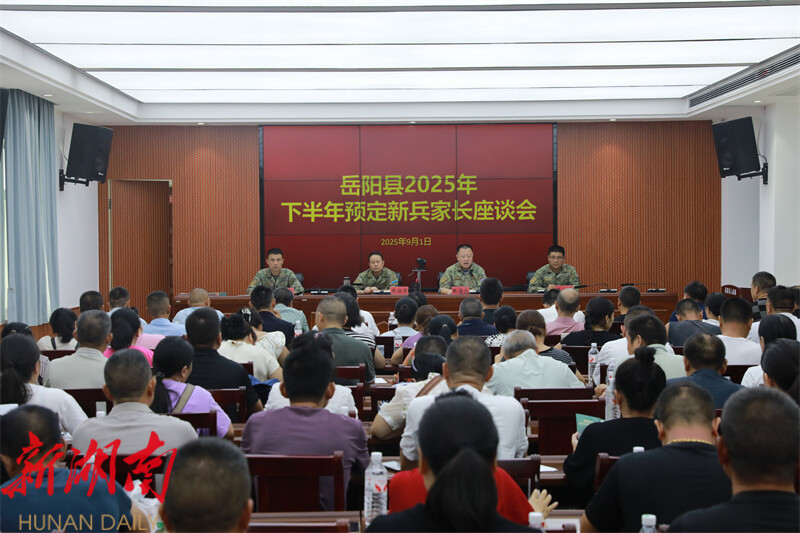 湖南日报·新湖南客户端 9月2日讯( 周昱君) 9月1日,岳阳县2025年下半年预定新兵家长座谈会暨新兵役前教育动员大会在县人武部召开。县委常委、人武部部长张海波,县人武部政委楚海军及124名预定新兵参加会议。