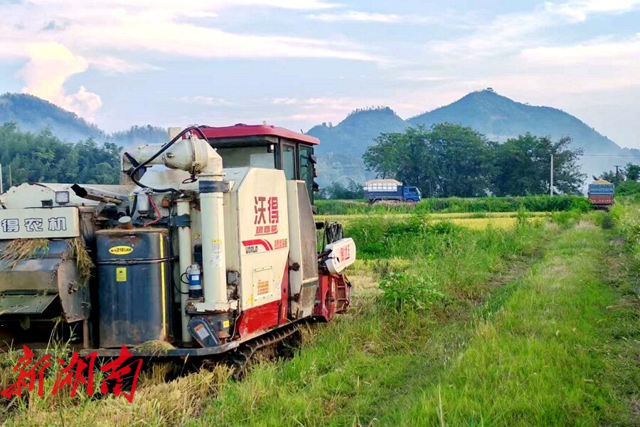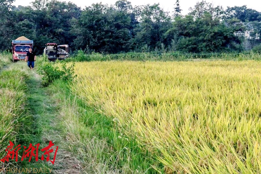视外桃源客户端9月1日讯(通讯员:陈巍影)金秋时节,稻浪飘香。8月下旬,夷望溪镇兴隆街居委会150 亩原田化示范田里一片繁忙景象,伴随着收割机的轰鸣声,金灿灿的中稻被源源不断地收割、脱粒,颗粒饱满的稻谷倾泻而出,绘就了一幅“粮满仓、人欢笑”的丰收画卷。