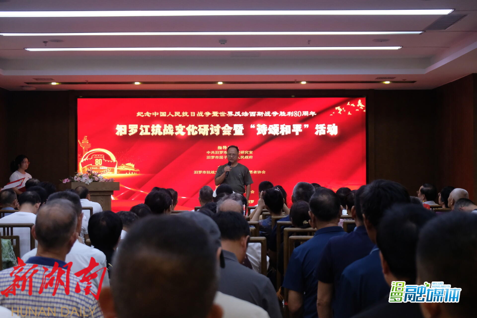 湖南日报·新湖南客户端9月2日讯(通讯员 王洁 仇鼎)8月31日,为纪念中国人民抗日战争暨世界反法西斯战争胜利80周年,汨罗市抗战文化研究与传播志愿者协会举行汨罗江抗战文化研讨会暨“诗颂和平”活动,以文化研讨和诗歌艺术的形式 ,铭记历史、缅怀先烈。