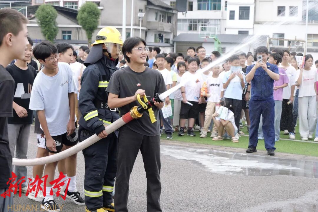 官地坪镇中学开展“开学第一课”消防安全主题活动,此次活动邀请县消防救援大队以“理论+实操”形式进行,内容涵盖消防安全集中宣讲、紧急疏散演练、灭火器实操体验及水枪水带使用教学等环节。在集中宣讲环节,消防员通过互动提问与同学们积极互动,现场氛围热烈,加深了大家对消防安全知识的理解与记忆。理论学习结束后,进入实操演练环节。同学们热情高涨、踊跃参与,亲身体验了灭火器和水枪水带的使用,不仅掌握了相关技能,更增强了应对火灾的信心与勇气。