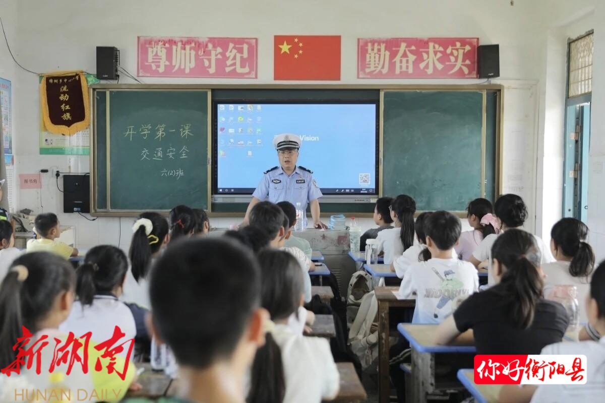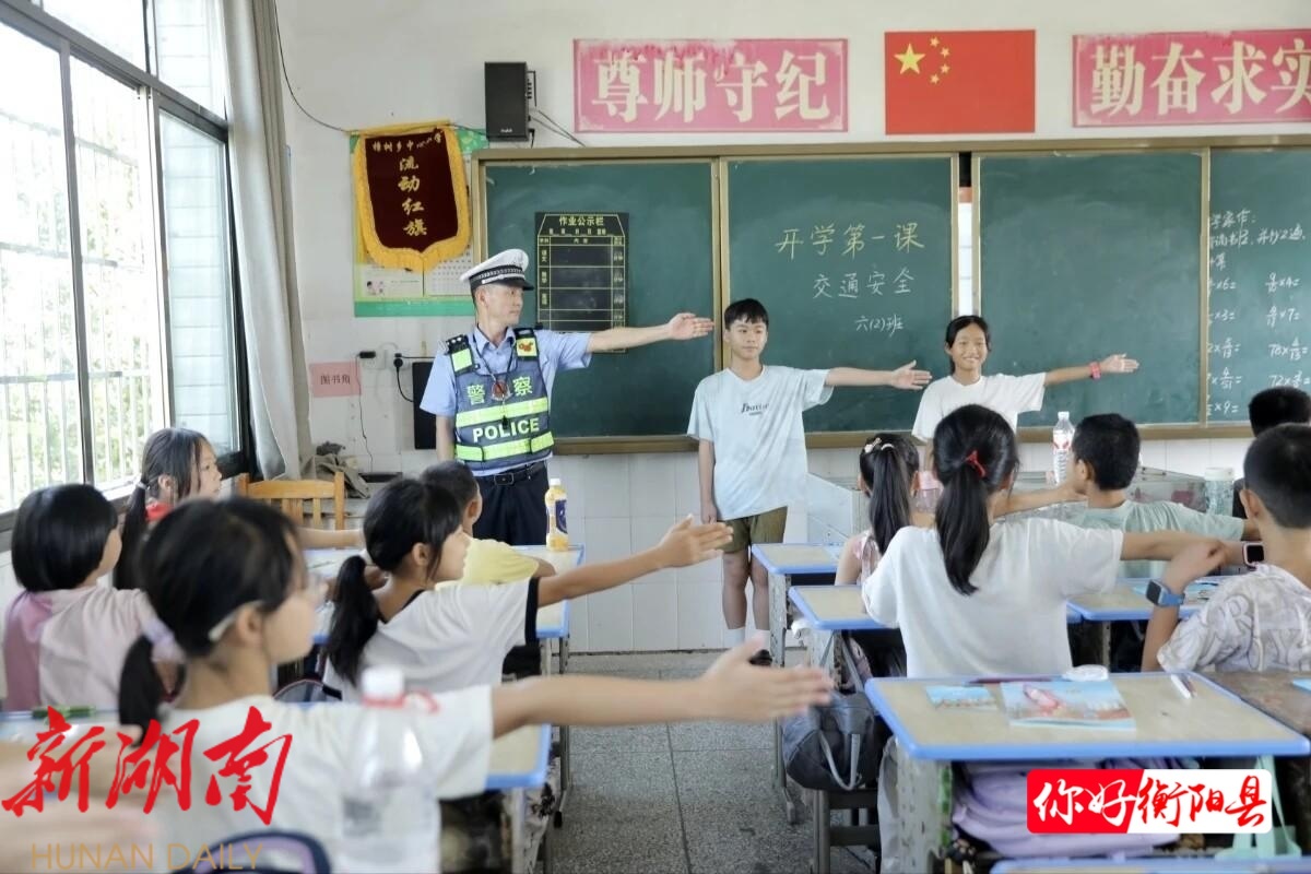 衡阳县融媒9月3日讯(记者:吴展名 通讯员:凌零 黄敏 ) 为进一步强化中小学生交通安全教育,提升广大师生及家长的交通安全意识和自我防护能力,从源头上预防和减少涉学道路交通事故,衡阳县公安局交警大队紧抓开学契机,精心组织,分别走进金兰镇中心小学、樟树中心小学、代友实验小学等多所学校,扎实开展形式多样、内容丰富的“开学第一课”交通安全主题宣教活动。