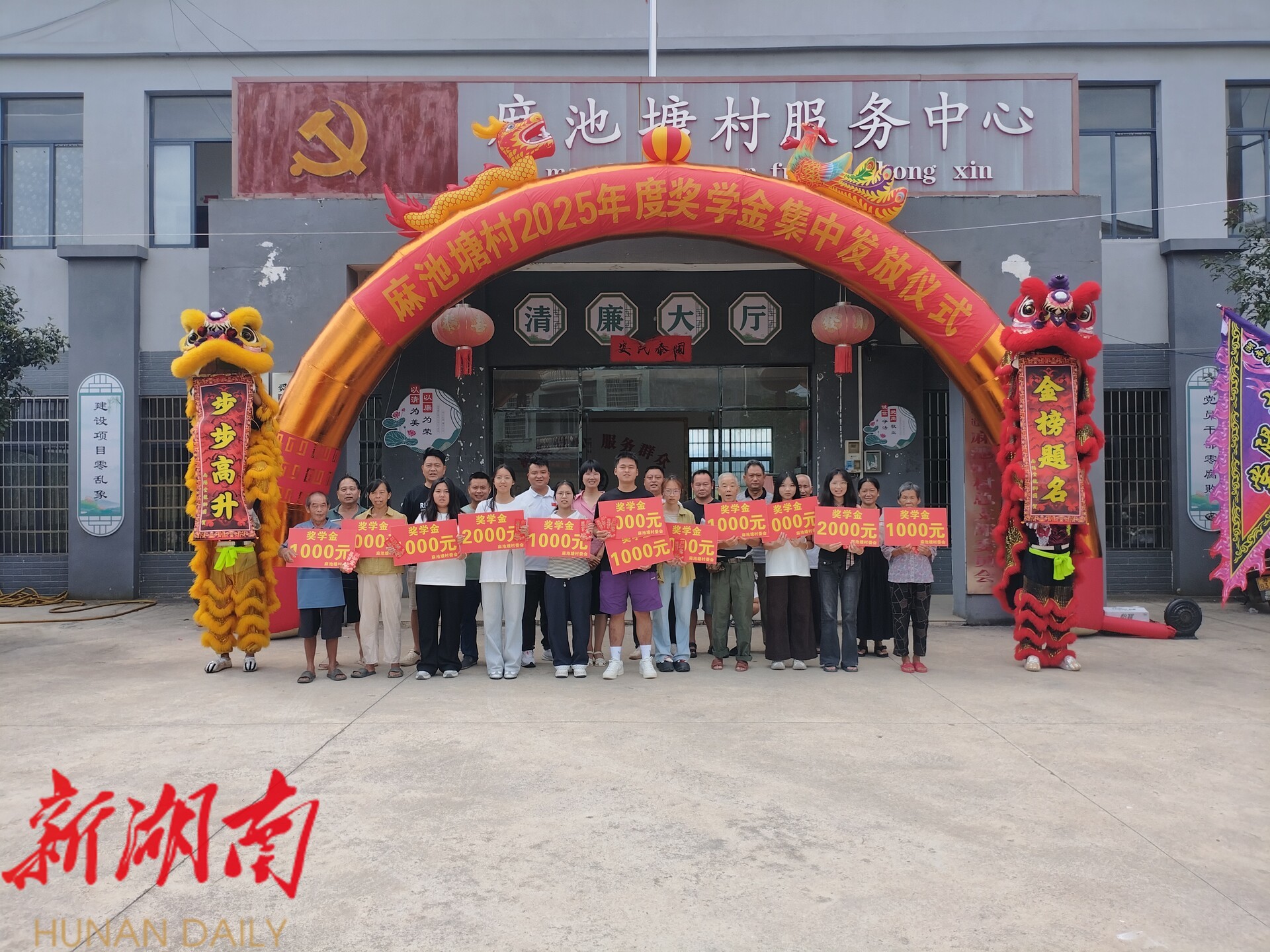 湖南日报·新湖南客户端9月3日讯 (通讯员 毛盛姣) 近日,宁远县舜陵街道麻池塘村举行奖学金发放仪式。13名在今年高考中金榜题名、成功考取大学的优秀学子齐聚一堂。