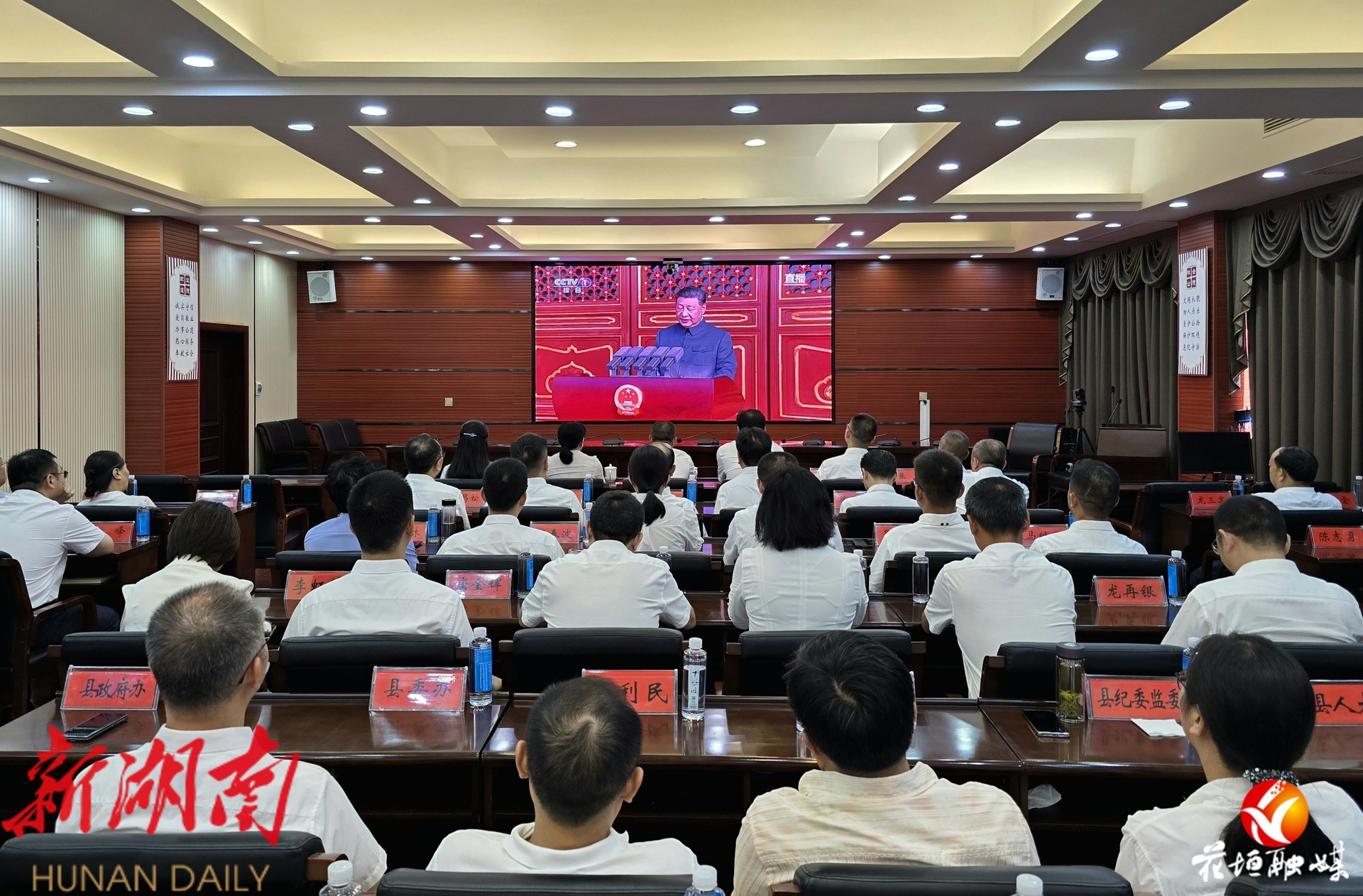 花垣县级领导集中收看纪念中国人民抗日战争暨世界反法西斯战争胜利80周年大会