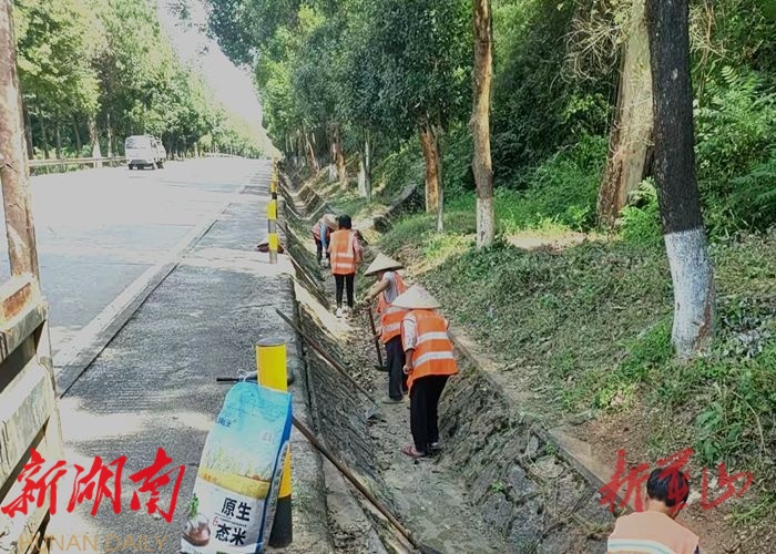 在高温考验下,每一名坚守一线的公路人,用汗水换来公路安全和畅通,展示着蓝山公路人良好的服务形象。