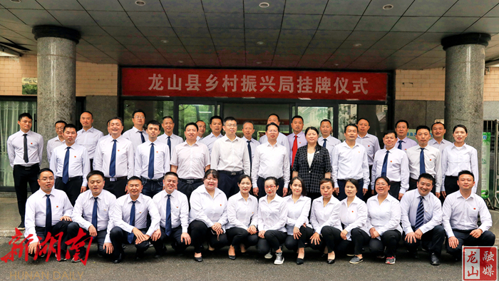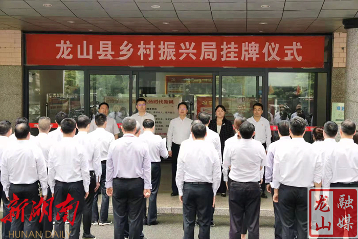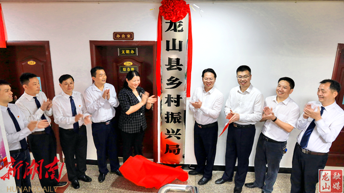龙山县乡村振兴局挂牌成立,图为县委书记刘冬生(右四)等县领导一行见证揭牌仪式