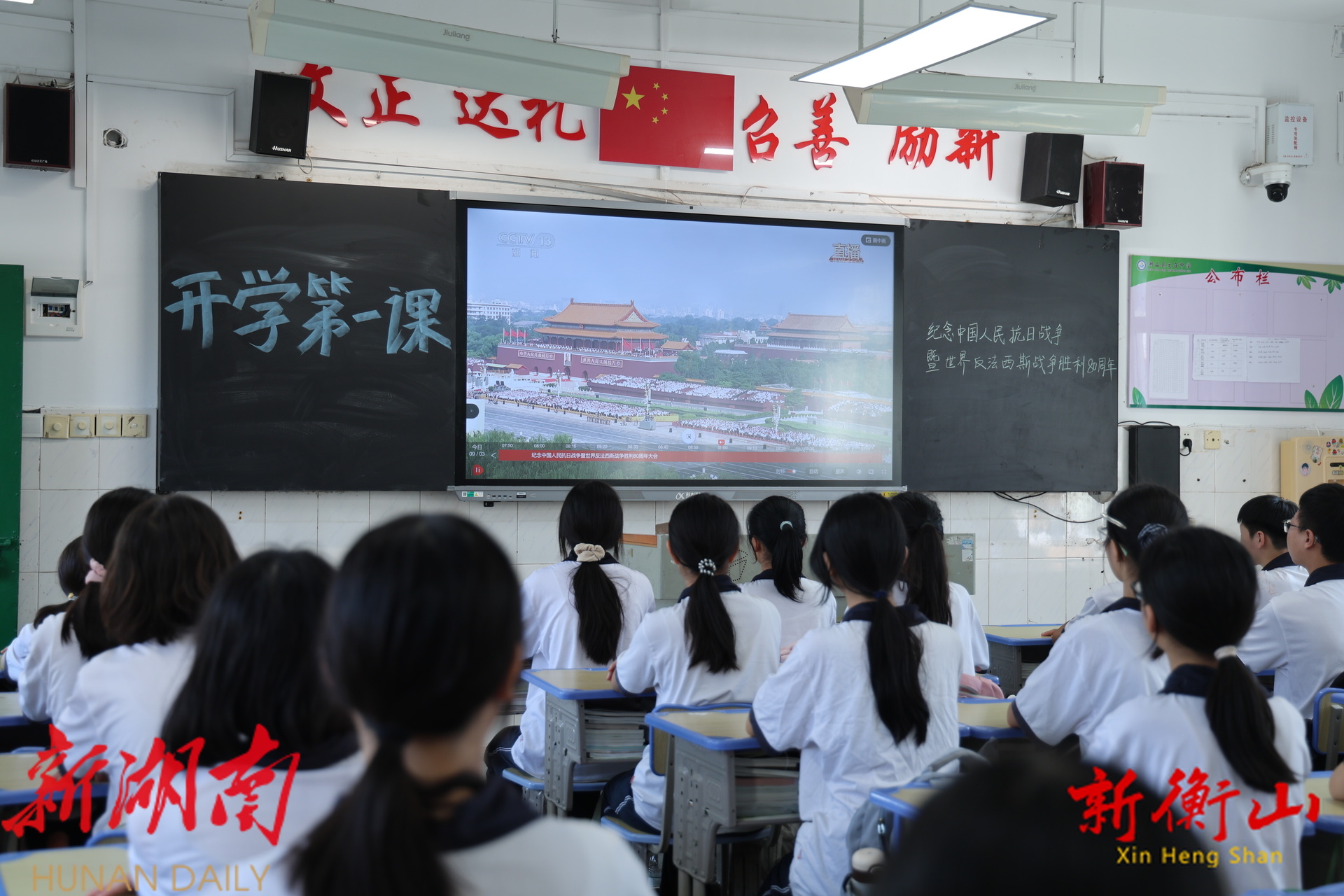 新衡山客户端9月3日讯(记者:蒋鹏 旷雨澄)衡山县文召中学将开学第一课与爱国主义教育紧密结合,通过军事训练、观看阅兵,让学子们铭记历史、缅怀先烈,传承伟大抗战精神。