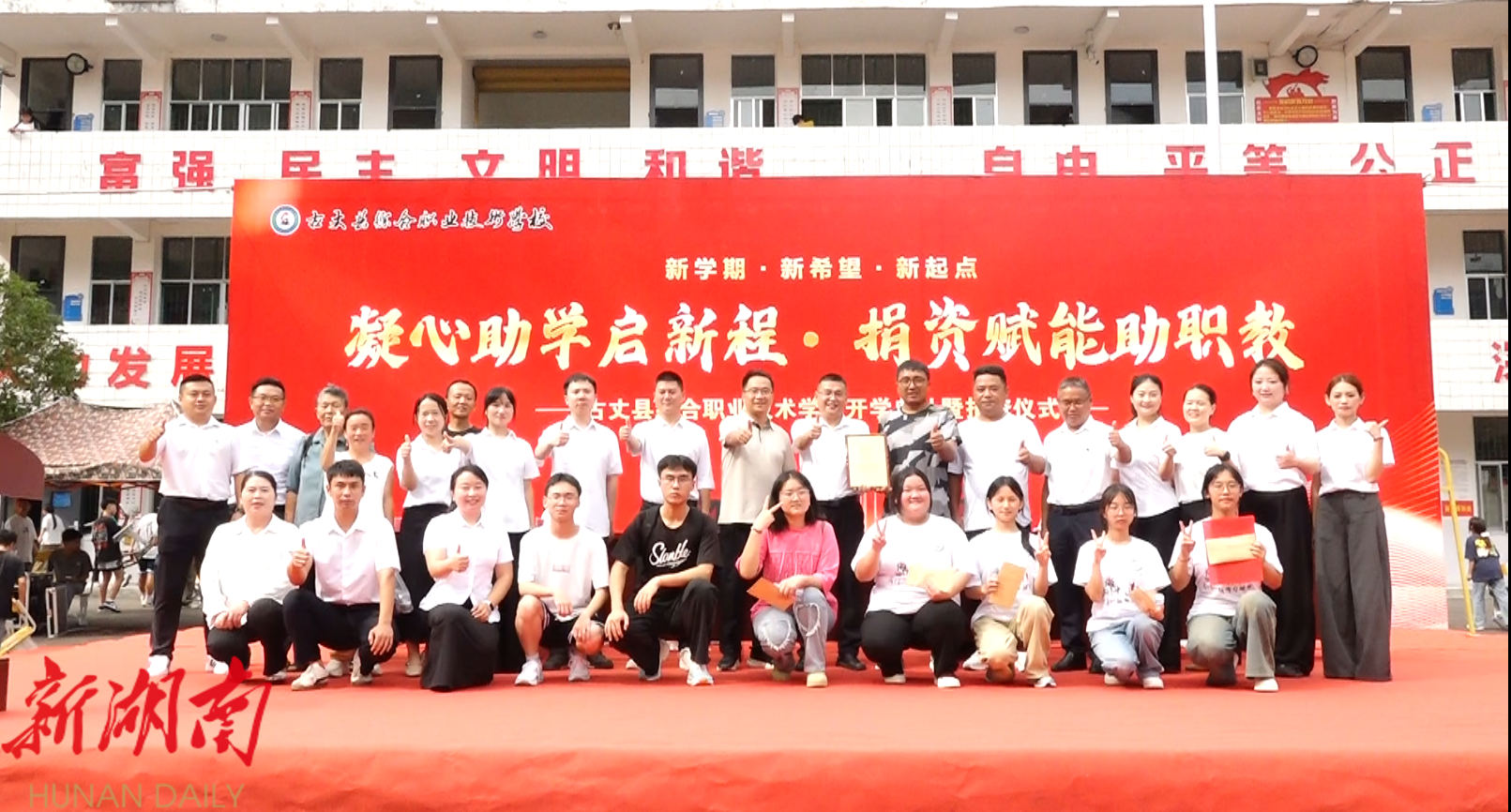 新湖南客户端9月3日讯(通讯员 王瑞媛)9月2日,湘西土家族苗族自治州古丈县综合职业技术学校举行了“凝心助学启新程 捐资赋能助职教”捐资仪式,本次活动旨在凝聚社会力量,助力教育事业发展。古丈县多家本地企业慷慨解囊,以实际行动支持家乡教育事业,助力学子成就梦想。