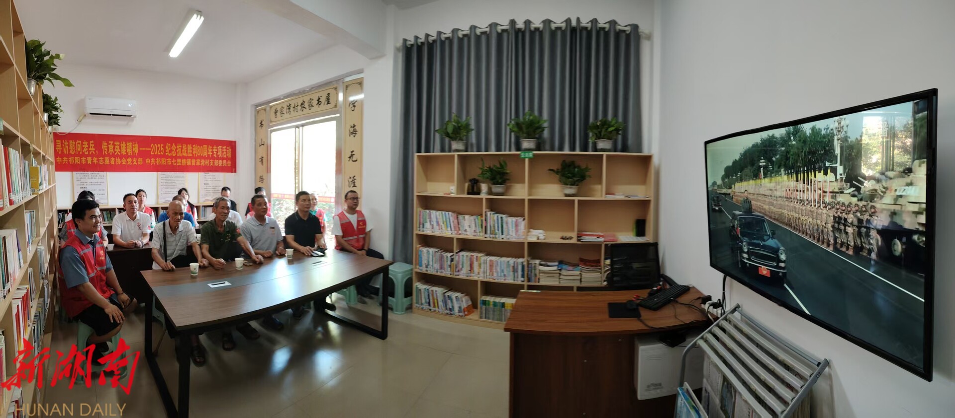 湖南日报·新湖南客户端9月3日讯(通讯员 周杰)9月3日,祁阳市七里桥镇曾家湾村联合祁阳市青年志愿者协会开展慰问老兵活动,为10位60岁以上退役老兵送去生活物资,并在农家书屋共同观看纪念中国人民抗日战争暨世界反法西斯战争胜利80周年大会直播。