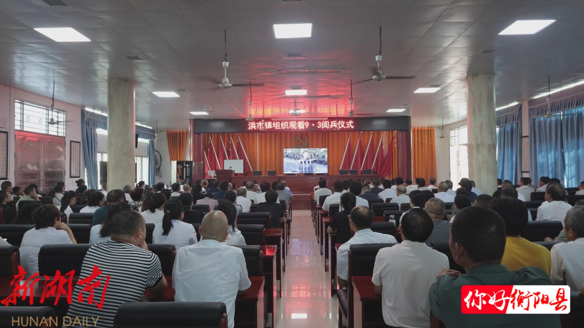 洪市镇党员干部集中收看纪念中国人民抗日战争暨世界反法西斯战争胜利80周年大会