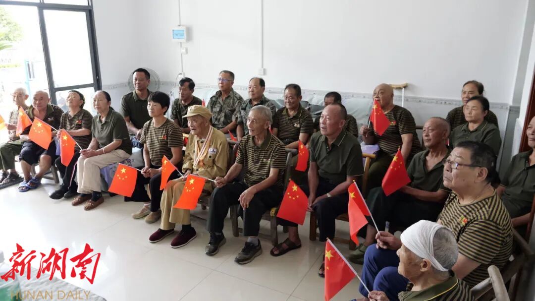 湖南日报·新湖南客户端9 月3 日讯(通讯员 肖君 肖磊)9月3日上午,纪念中国人民抗日战争暨世界反法西斯战争胜利80周年大会在北京天安门广场隆重举行。在桑植县洪家关光荣院的观看厅里,一群特殊的观众早早地聚集于此,他们是老红军、老赤卫队员、老八路、老战士和烈士亲属,其中,最引人注目的当属101岁的抗美援朝老兵刘严然。