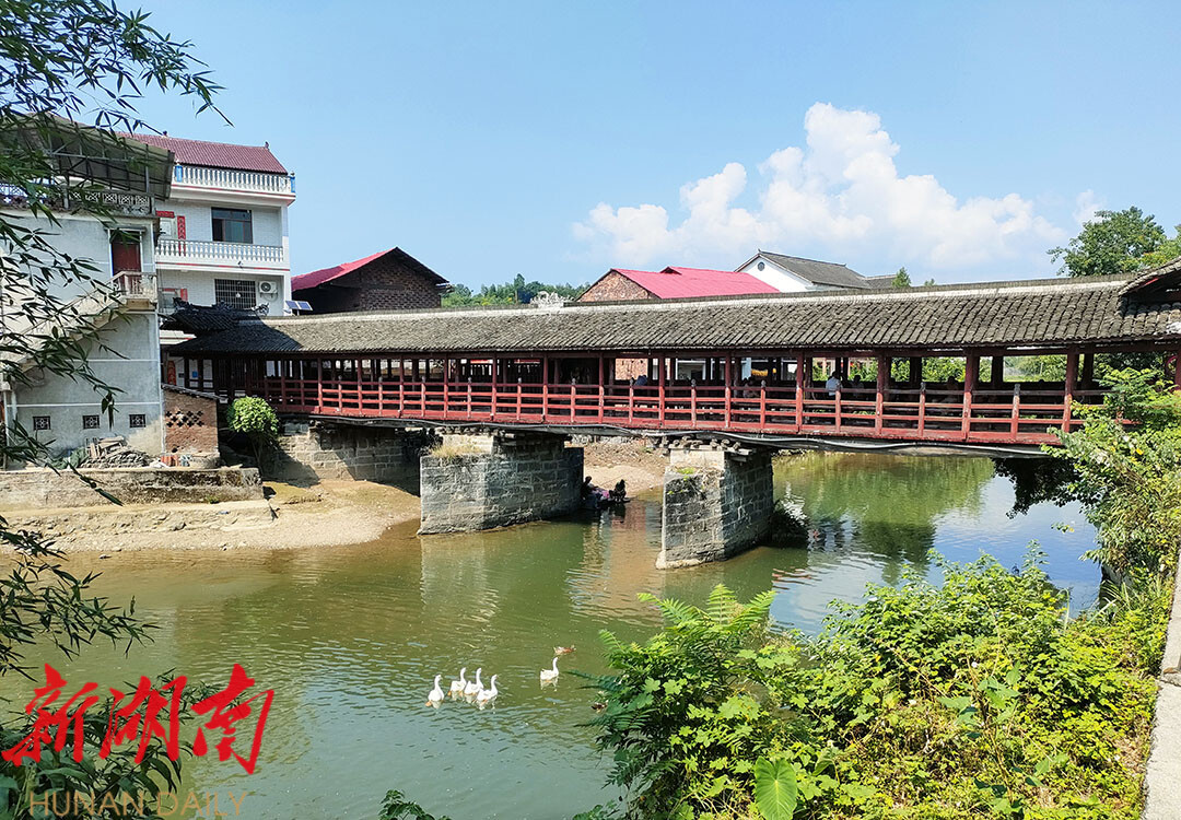 新新邵客户端9月3日讯 (记者 何雯 陈望远)一桥架南北,天堑变通途。位于新邵县坪上镇罗桥村的罗家桥,始建于清道光四年(即1824年),距今已有200余年历史。这座青石为墩、原木为栌、四孔三墩的风雨桥,横跨水清岸绿的麻溪河,气势恢宏,原木廊檐曾为无数行客遮风挡雨。