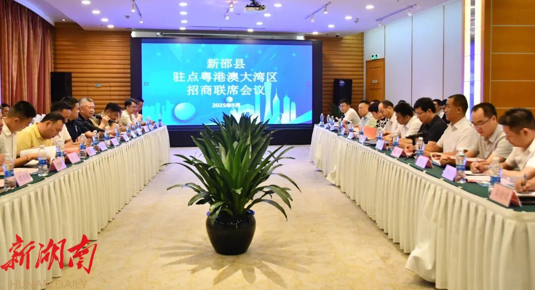 考察期间,考察组走访了广东省湖南邵阳商会和深莞惠新邵商会,并组织召开新邵县驻点粤港澳大湾区招商联席会议。湖南省人民政府驻广东办事处副主任谢潇波,大湾区十余家商协会代表和优秀乡友校友应邀参会。会议集中观看了新邵县情宣传片,新邵经开区管委会主任谢羽华专题介绍了驻点招商机制与产业培育情况,各商协会代表围绕产业协同、资源导入等积极建言。谢小军代表县委、县政府感谢广大乡友和商协会长期以来对家乡的支持,全面介绍了新邵“文化盛地、枢纽要地、发展宝地、投资洼地、宜居福地”的综合政策和发展态势。他强调,县委、县政府高度重视驻点招商工作,专门制定《招商平台公司组建招商小分队暨异地商协会招商合作实施办法》,招商平台公司要持续强化机制、资源整合和政策保障,推动招商工作制度化、专业化,全力将小分队打造成为新邵与大湾区深化合作的“桥头堡”和“强引擎”。