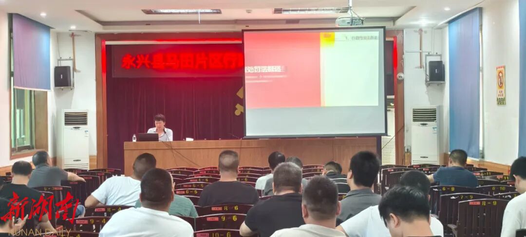 湖南日报·新湖南客户端9月4日讯(通讯员 曹子昕)为全面提升乡镇(街道)综合行政执法大队执法人员的综合素质和业务水平,推进严格规范公正文明执法,8月29日,永兴县司法局组织马田镇、高亭司镇、油麻镇、悦来镇、洋塘乡等乡镇(街道)共计50余名专职执法人员在马田镇政府开展综合行政执法业务专题培训。