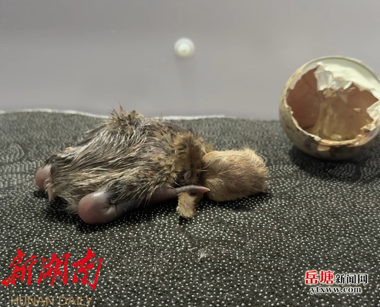 岳塘融媒9月4日讯 (通讯员 唐思雯)身披棕黄色绒毛,头顶光秃,双腿纤细修长,呆萌模样酷似“小鸡”......在岳塘区盘龙大观园内,2025年3只人工繁育的丹顶鹤宝宝在经过32天的孵化后顺利破壳,首破华中地区人工孵化丹顶鹤一次多只记录。3只鹤宝宝的破壳不仅是对盘龙大观园工作人员辛勤付出的最好回报,也标志着园内今年丹顶鹤人工育雏工作的正式开始。