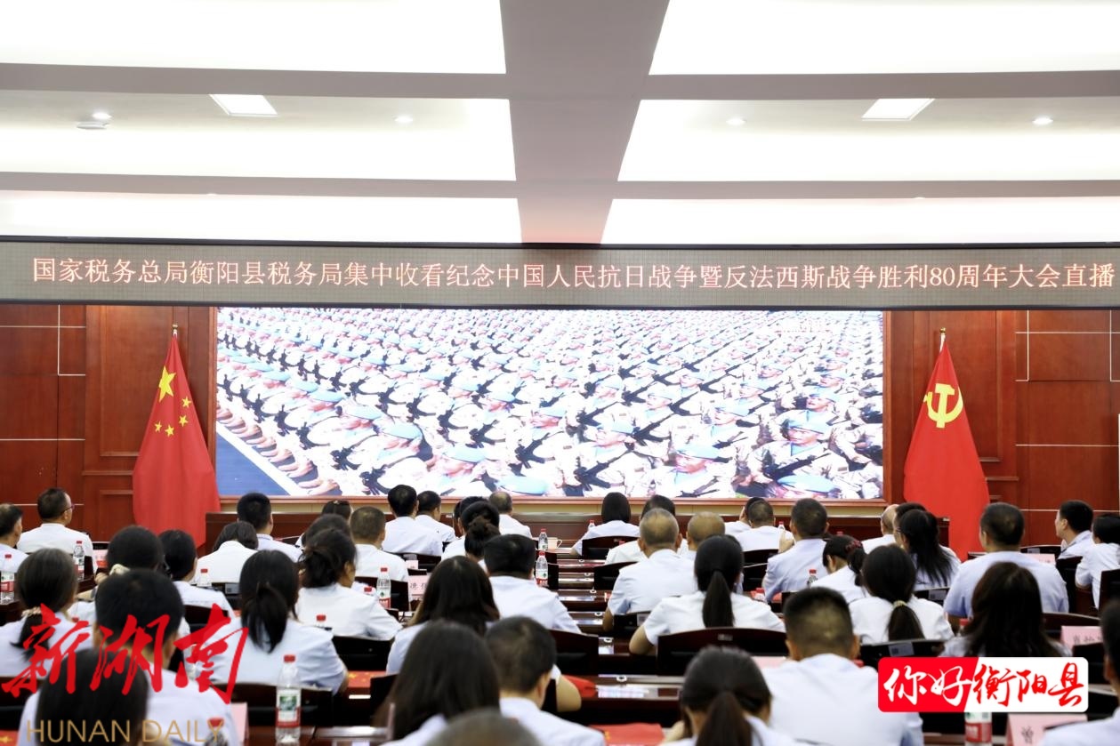 9月3日上午,纪念中国人民抗日战争暨世界反法西斯战争胜利80周年大会在北京隆重举行。国家税务总局衡阳县税务局积极响应,提前部署,组织全局干部集中收看直播,在铿锵步伐与激昂旋律中重温峥嵘岁月,传承抗战精神。