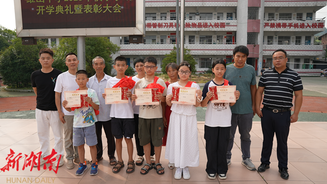 活动现场,学校负责人对新学期进行部署,鼓励全体师生以饱满的热情投入到新学期的学习与教学工作中,共同开启新篇章。助学基金会对评选的15名小学优秀毕业生(设一、二、三等奖各5人)进行奖励,其中,一等奖每人获1500元助学金,二等奖每人1000元,三等奖每人500元,每年固定发放助学金1.5万元。