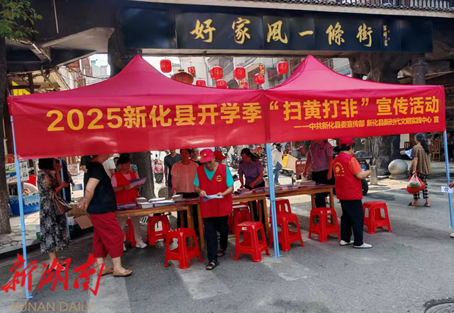 湖南日报·新湖南客户端9月4日讯(通讯员 曾锦文 康玉缘 杨奥婷)近日,新化县新时代文明实践中心联合县“扫黄打非”办公室、上梅街道、上梅派出所、县文化执法大队等单位,以“集中摆摊+入户宣讲”形式,在“好家风一条街”及周边社区开展“扫黄打非”专项宣传,将法治理念与文明新风送抵群众身边。