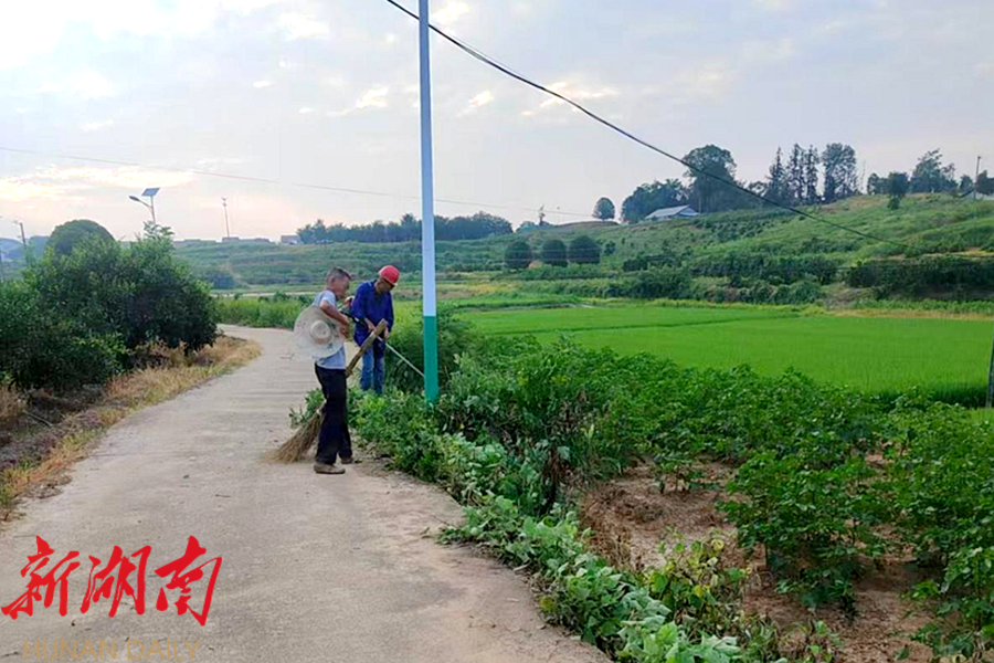 视外桃源客户端9月2日讯(通讯员:刘展鹏)“今明两天辛苦大家把包保路段的砍杂搞到位,暑假结束,校车要经常走了,杂草对视线遮挡严重。” 9 月 1 日星期一,是刘炎村公益性岗位工人集中扫除的日子,在刘炎村白洋湾组,把清扫道路的消息传达完,给工人们送完冰水后,刘炎村治调主任江克新又匆匆赶往了下个路段。