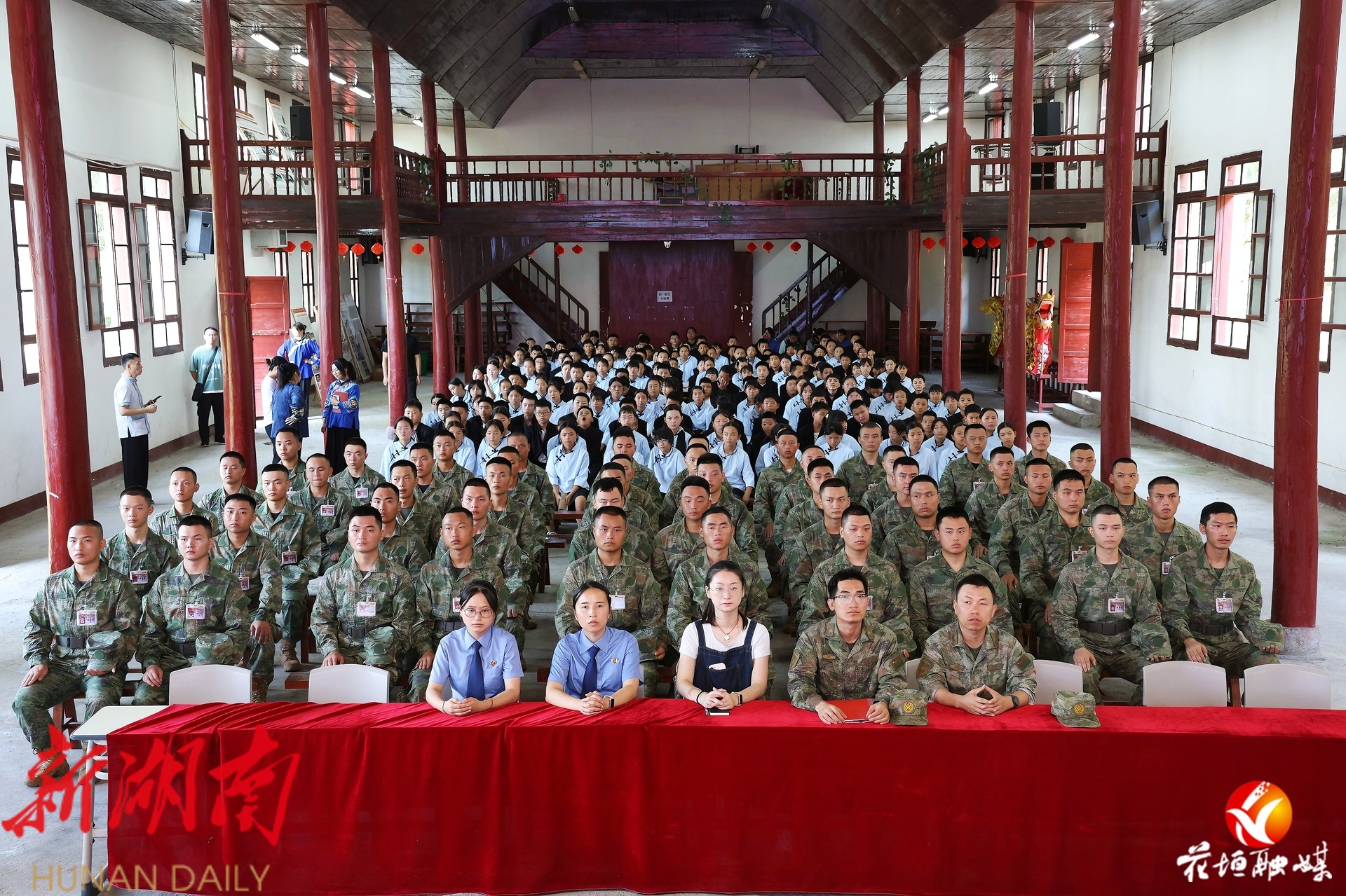 湖南日报·新湖南客户端9月4日讯(通讯员 林彬) 9月4日,花垣县2025年度下半年50名“双合格”应征青年役前教育活动在花垣县第三中学(原国立茶峒师范旧址)举行。活动不仅帮助应征青年筑牢思想根基、坚定报国信念,同时也对在校中学生进行了国防教育的熏陶。