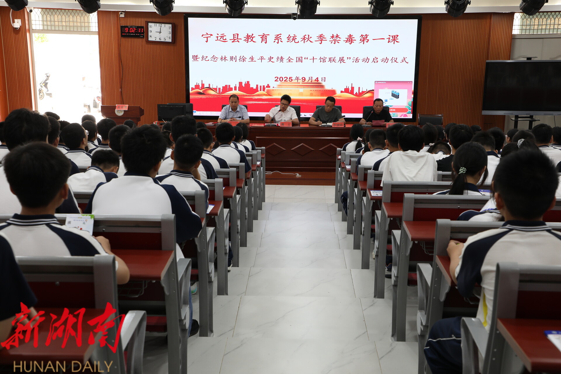 湖南日报·新湖南客户端9月5日讯(通讯员 骆丽霞 ) 9月4日上午,宁远县教育系统2025年秋季开学禁毒第一课暨做好禁毒先驱林则徐生平史绩全国“十馆联展”活动启动仪式在宁远一中崇德学校举办,县禁毒委、禁毒宣教中心、教育局等相关单位负责人以及县崇德学校校长、初中部分师生共400多人参加。