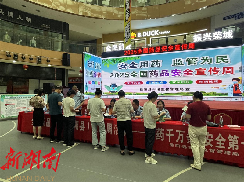 湖南日报·新湖南客户端9月5日讯(通讯员 胡小倩 方音支) 为进一步提升社会安全用药认知水平,增强公众安全用药科学意识和自我保护能力,9月4日,岳阳县市场监督管理局以“安全用药 监管为民”为主题,开展2025年“全国药品安全宣传周”宣传活动。