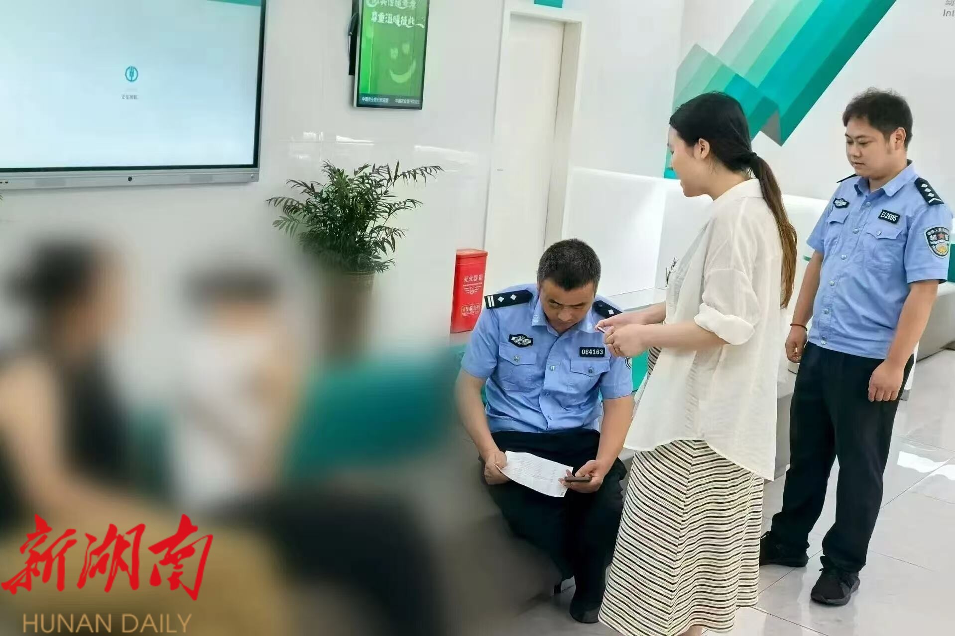 今年7月中旬,洞口县石江镇居民谭女士来到当地农业银行要求解除账户限制额度,在了解到谭女士要提取账户剩余的20余万元款项用于“购买黄金”,结合其账户此前存在多笔不明大额交易记录,银行工作人员果断暂停业务并报警。洞口县公安局石江派出所民警火速赶赴现场。