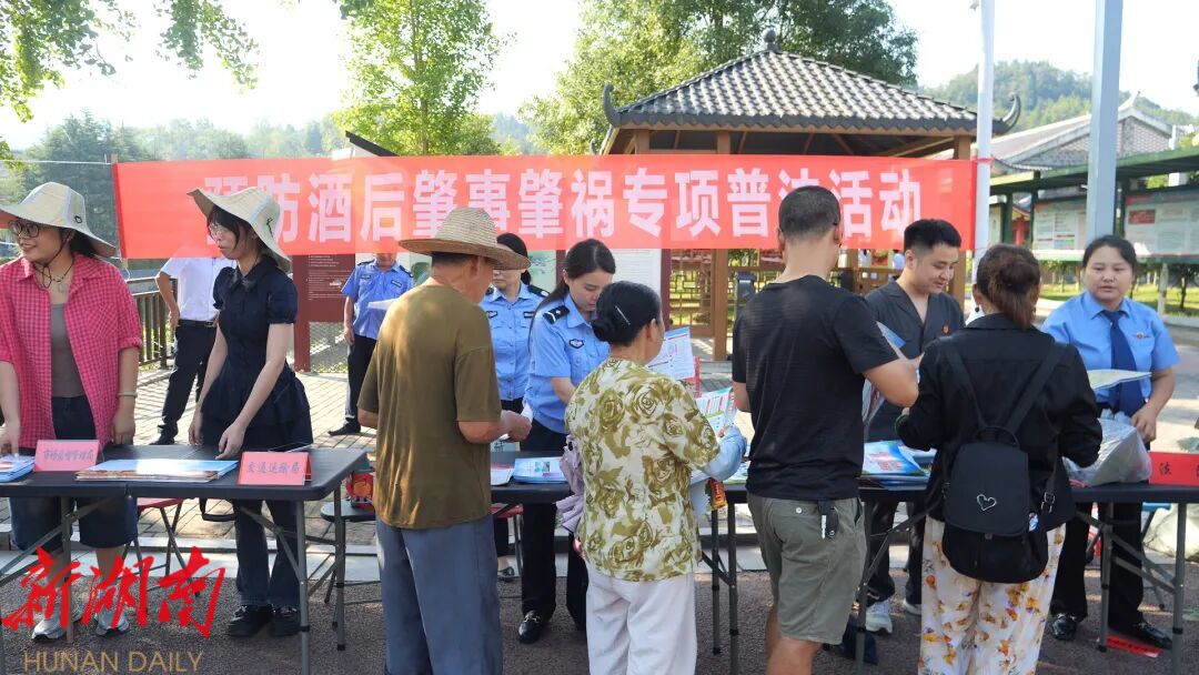 湖南日报·新湖南客户端 9月4日讯(通讯员 钟彬豪 )“喝酒后千万不要开车,更不能寻事滋事!”9月4日,桑植县司法局联合县人民法院、县人民检察院、县公安局等单位在洪家关白族乡开展预防酒后肇事肇祸专项普法活动,将法治宣传与文旅场景深度融合,为群众和游客送上一堂生动的“交通安全法治课”。