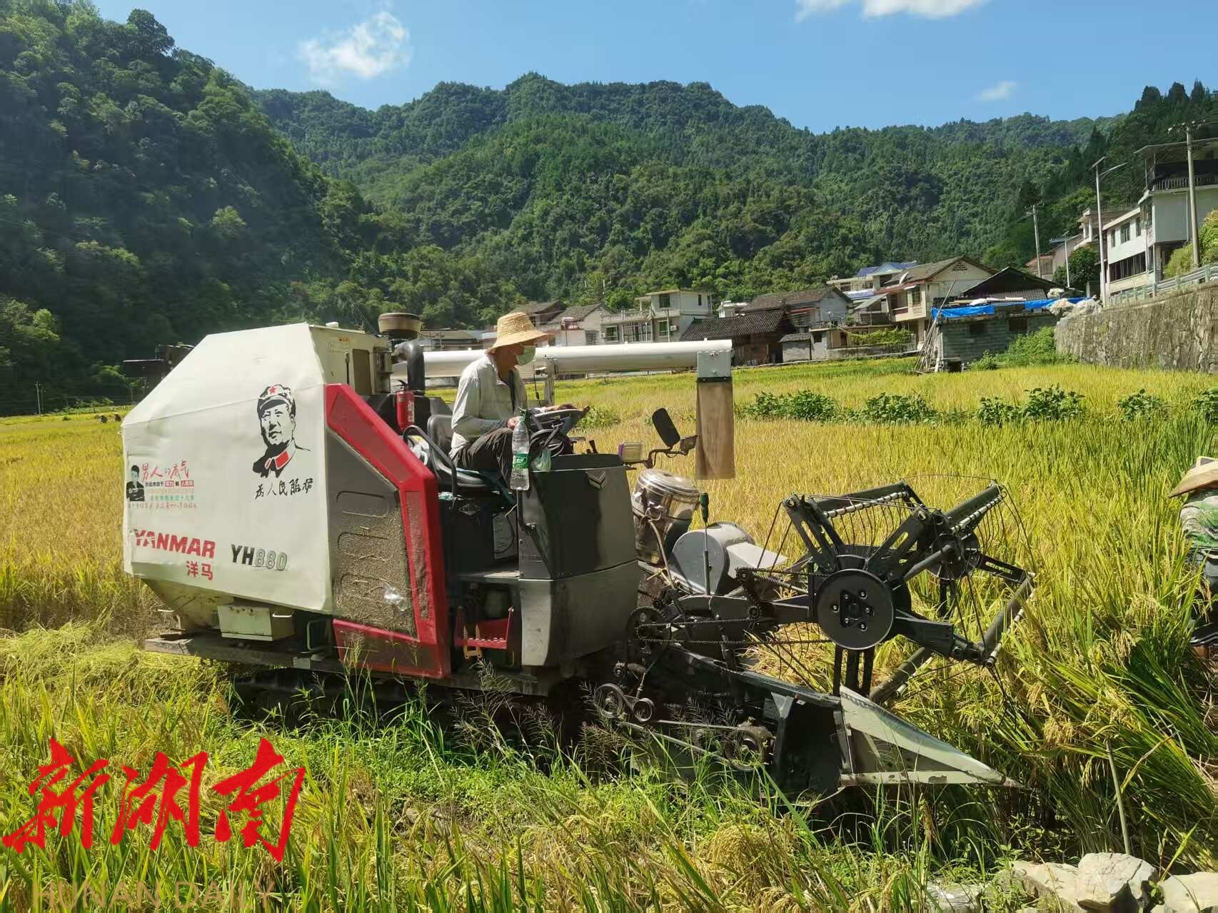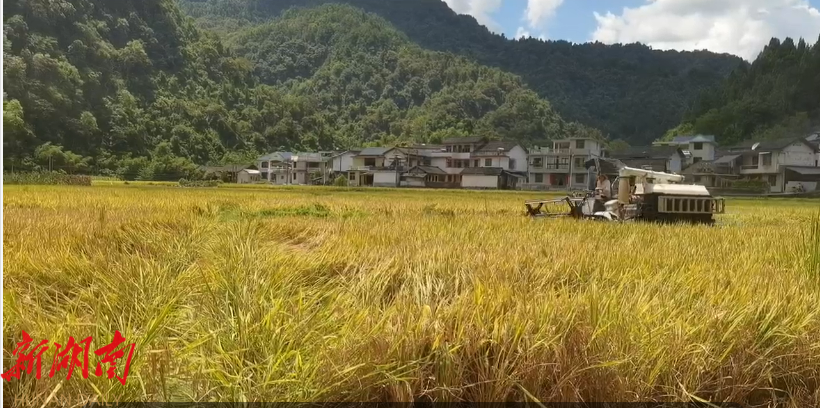新湖南客户端9月5日讯(通讯员 胡婧玥)近日,湘西土家族苗族自治州古丈县古阳镇官坪村高标准农田基地一片丰收景象——300 亩水稻农田里,收割机穿梭作业,金黄稻谷不断入仓;宽整的生产路保障农机顺畅通行,全程机械化操作让收割效率大幅提升,彻底告别了传统种植的人力忙碌模式。这是该村2024年完成基地改造后,农业生产迎来的全新变化。