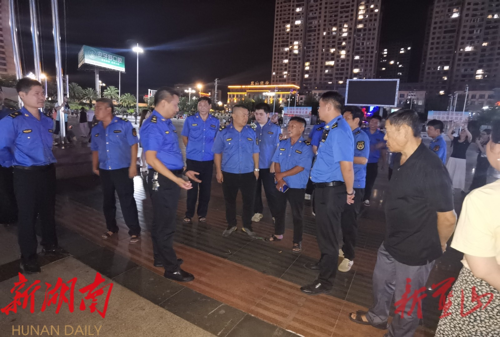 在塔下寺广场,执法人员对夜宵摊点等经营行为进行巡查,调研相关经营情况,为后续整治行动打下坚实的基础。