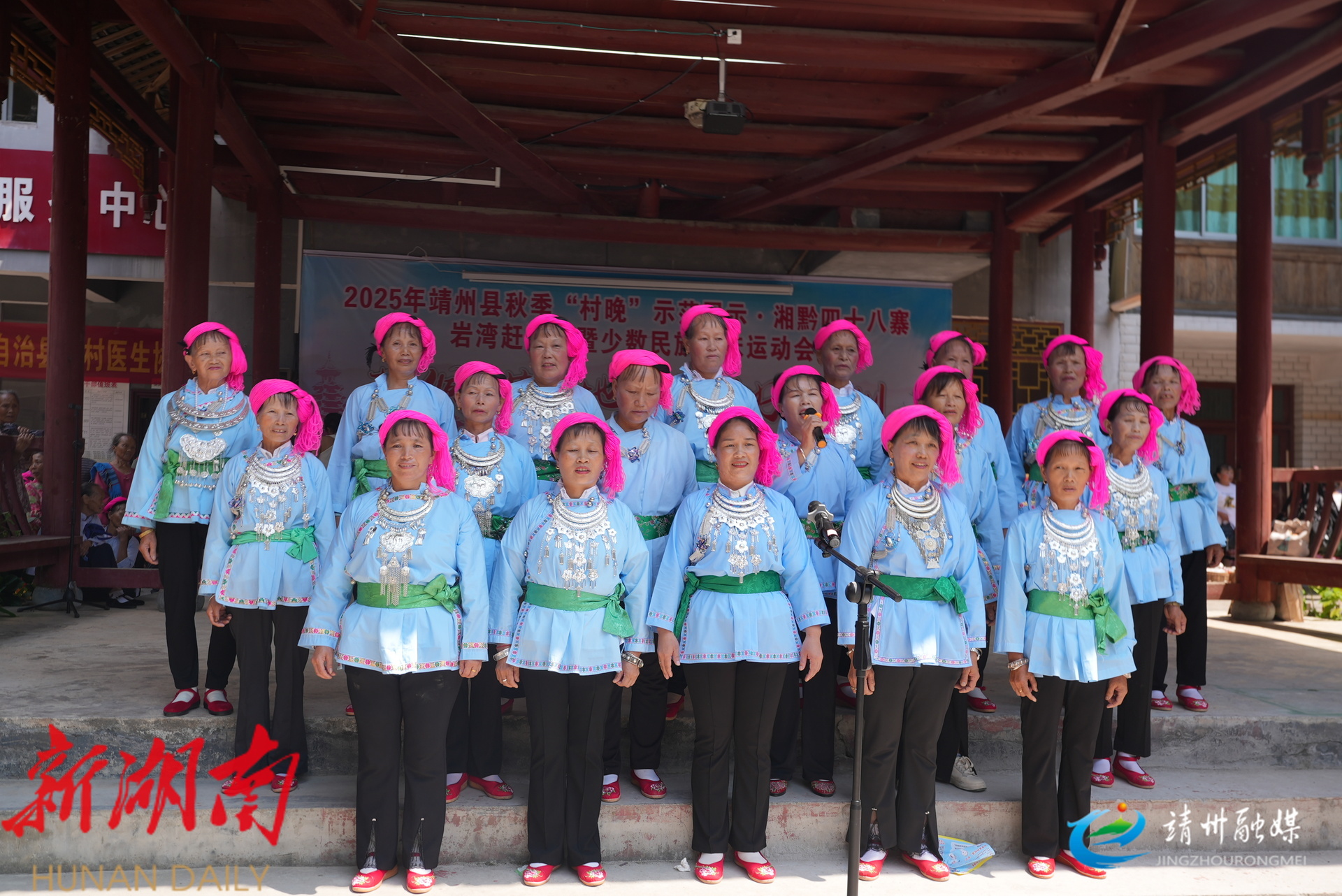 靖州融媒9月 6 日讯 (记者 钦苏芬 张秦 通讯员 王智民 龙琳 )9月5日,2025年靖州苗族侗族自治县秋季“村晚”示范展示暨“四十八寨”岩湾赶歌场民族文化交流活动,在大堡子镇岩湾村举行,湘黔两省群众齐聚一堂,共赴这场民族文化盛宴。