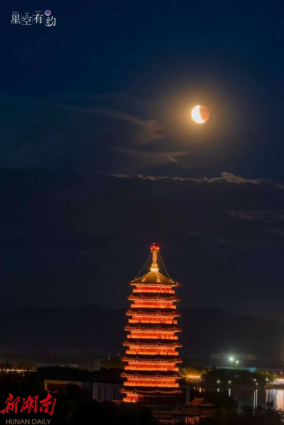2021年5月26日,在北京怀柔区雁栖塔拍摄的月全食。(宋桂东 摄)