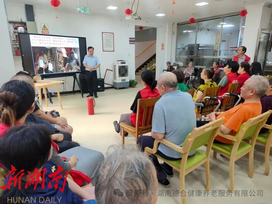 湖南日报·新湖南客户端9月6日讯(通讯员 彭淑媛)9月5日上午9时,湖南德合健康养老服务有限公司旗下德合养老院携手长沙市开福区望麓园街道德合居家养老服务中心、营盘街社区德合居家养老服务站、富雅坪社区德合居家养老服务站、水风井社区德合居家养老服务站、荷花池社区德合居家养老服务站、中山路社区德合居家养老服务站全体员工及养老院在住的老人,在负责人彭淑媛、高谢院长带领下,开展了一场全面的消防安全知识学习和实践。