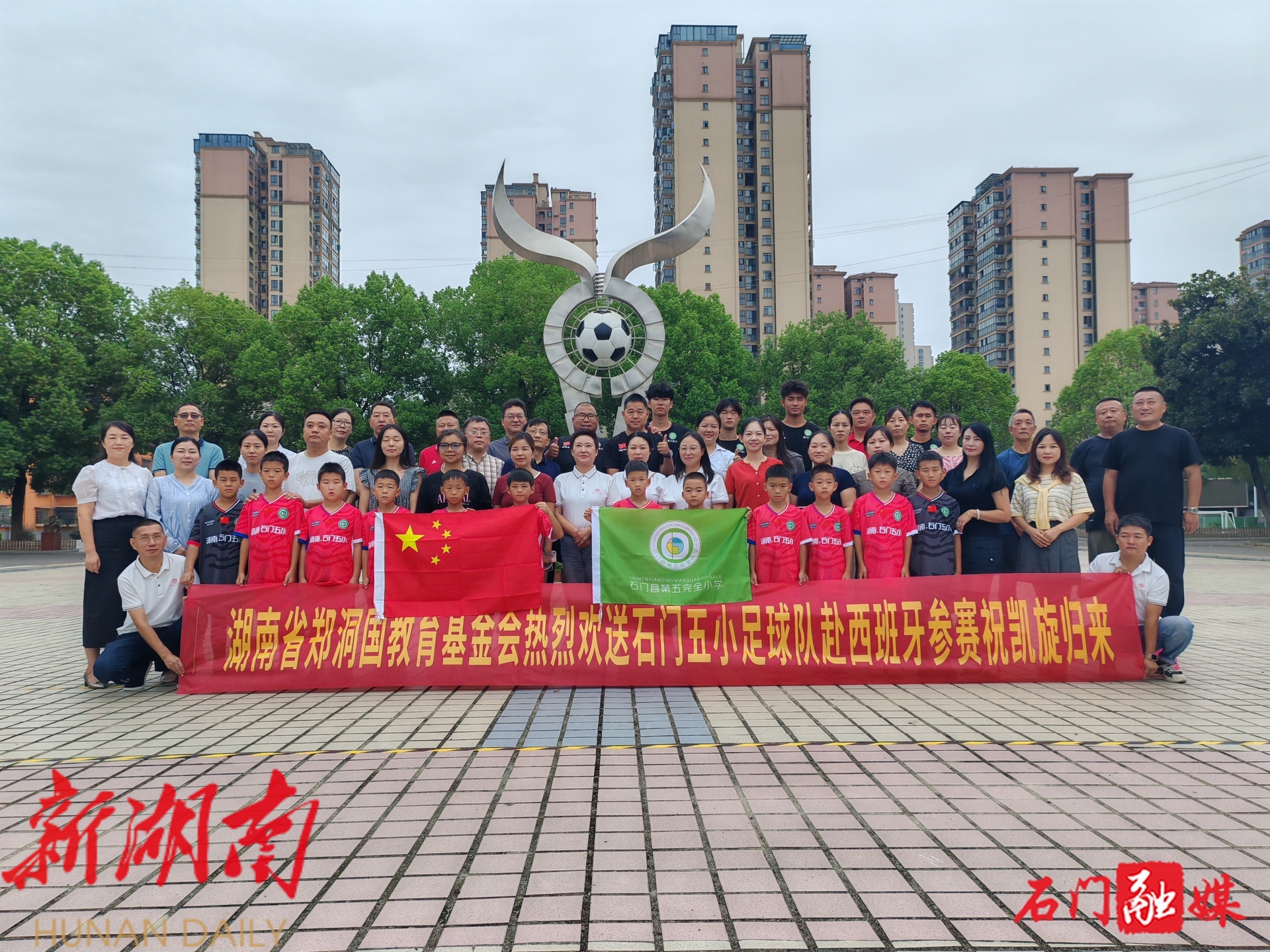 新石门客户端9月7日讯(通讯员 刘平)“2018年12月8日在学校教室收看中国足球小将对阵巴塞罗那,今天我们即将出征西班牙。七年的不断学习、训练、比赛,终于跨出了国门,触摸世界最顶级的青训。”9月6日清晨,石门县第五完全小学足球教练谢波在朋友圈发布的这条动态,配上一段七年前带领学生收看比赛的视频,瞬间刷屏,让无数人为之动容。这条跨越七年的朋友圈,见证了两代足球少年的梦想接力。