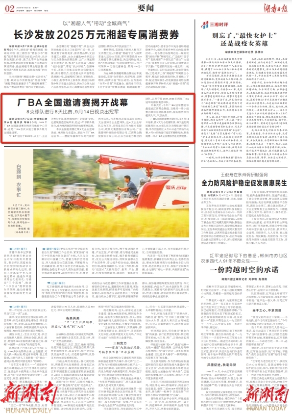 湖南日报要闻头条 | 厂BA全国邀请赛揭开战幕,9月14日晚决出冠军