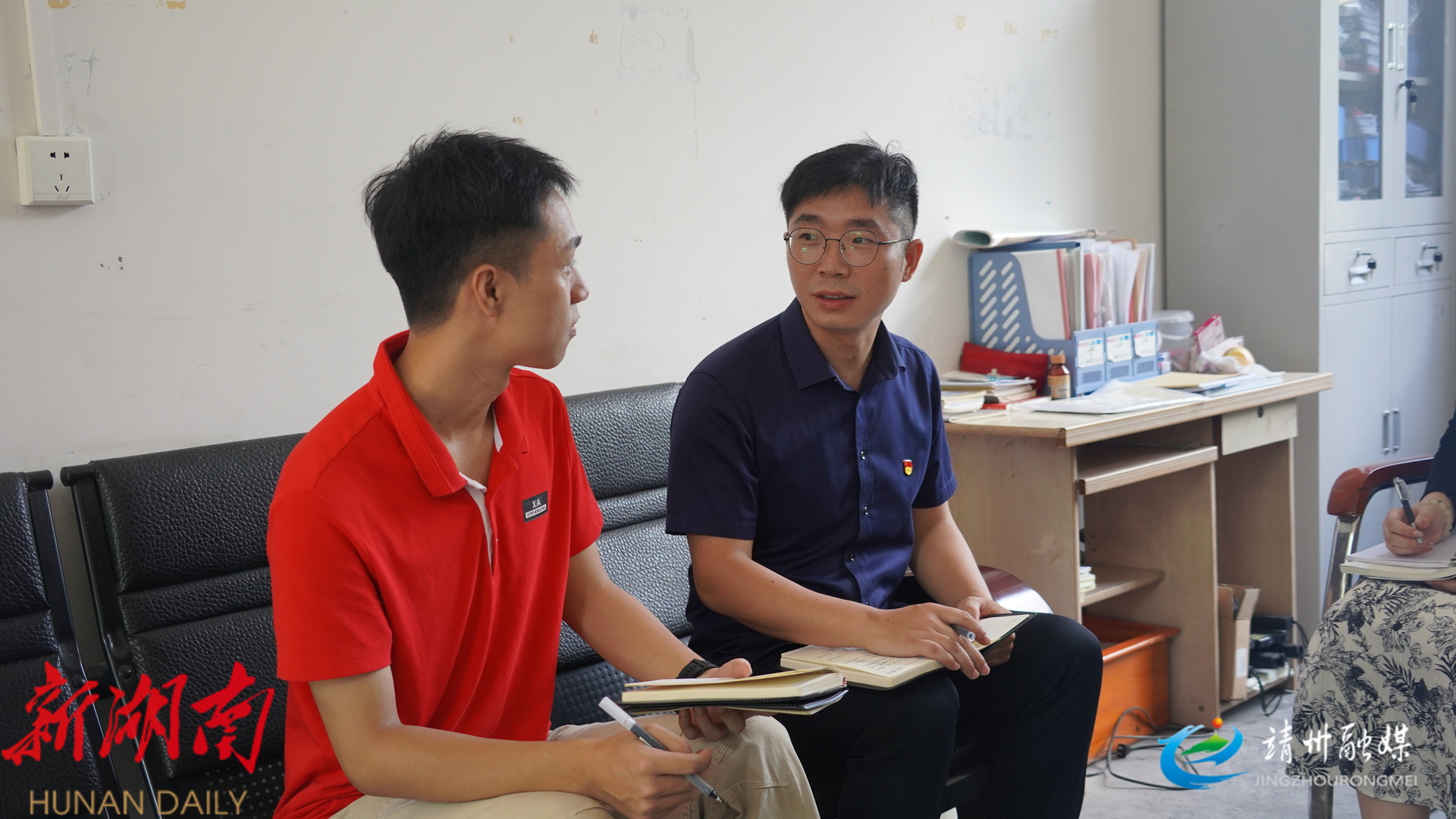 校长钟江华关心询问新教师许明昊的工作、生活情况(蒲湘萍 摄)