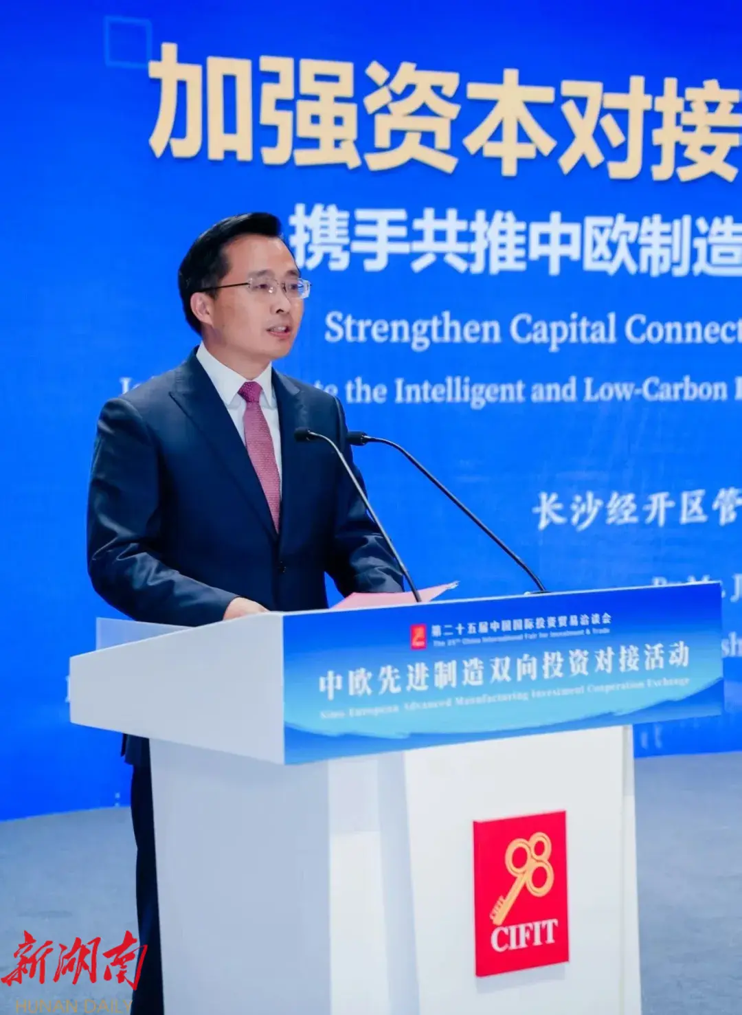 湖南日报·新湖南客户端9月8日讯。(长沙经开区工作站记者 欧亚琦)9月8日,第二十五届中国国际投资贸易洽谈会在厦门盛大启幕。作为大会的重要环节之一,中欧先进制造双向投资对接活动在厦门国际会议中心举行。来自德国等欧洲国家的先进制造业企业代表齐聚鹭岛,与中国重点产业园区代表面对面对接。长沙经开区党工委副书记、管委会主任蒋红波,长沙经开区党工委副书记赵文骄出席活动。