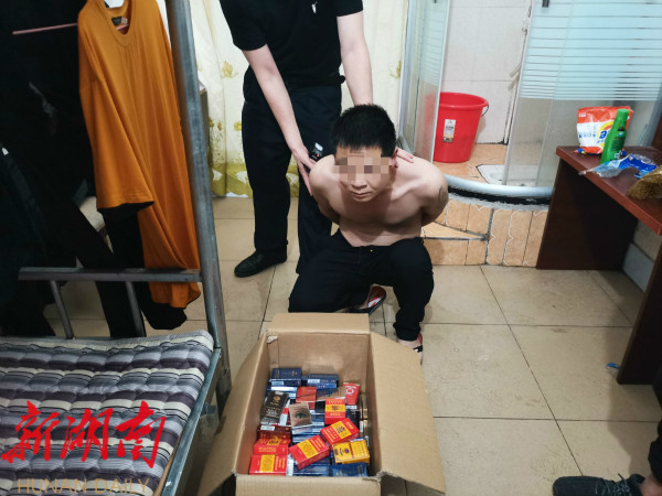 ▲民警在宋某清的租房内民警缴获了部分没有转手的香烟