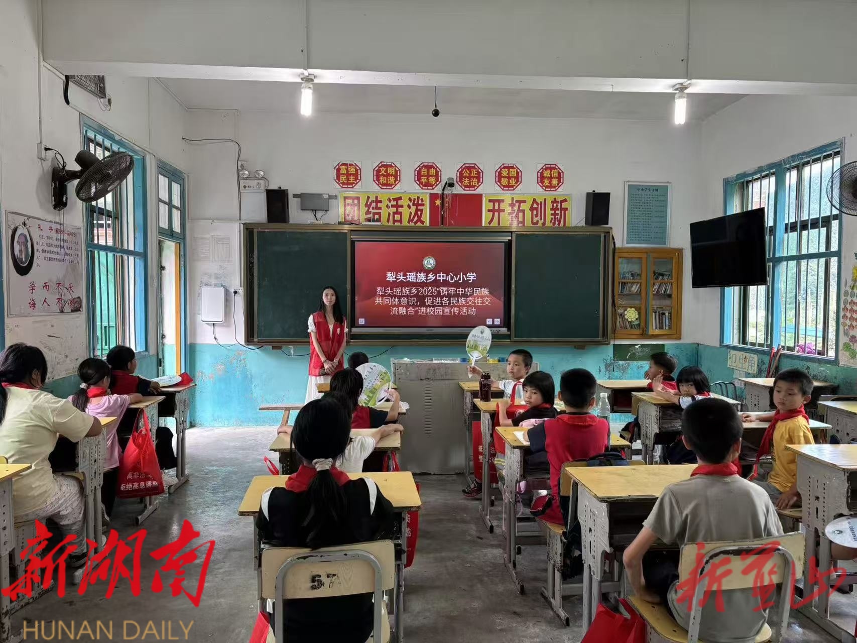 新蓝山客户端9月10日讯 (通讯员 刘艺容)9月5日,犁头瑶族乡新时代文明实践所联合乡中心小学,共同开展以“铸牢中华民族共同体意识 促进各民族交往交流交融”为主题的民族团结进步宣传月活动,让民族团结的种子播撒在同学们心中。