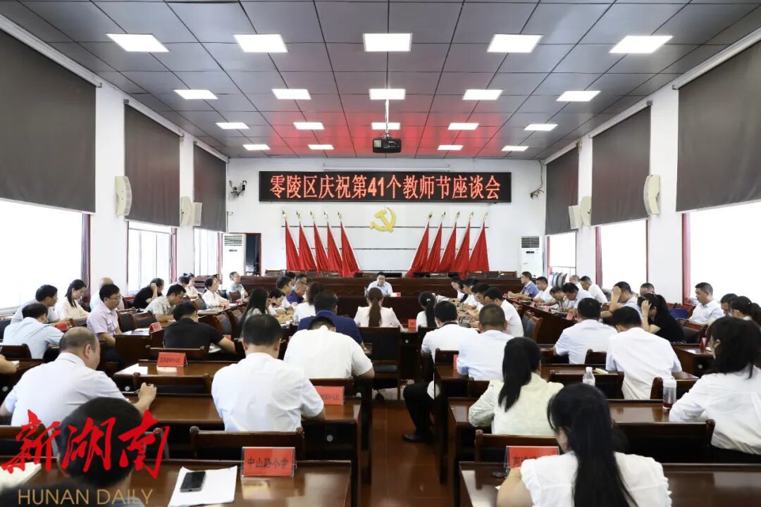 湖南日报·新湖南客户端9月10日讯(通讯员 郑琨)9月9日上午,零陵区召开庆祝第41个教师节座谈会。区委书记赵立平出席并强调,要坚决扛起办好人民满意教育的时代使命,全力推动零陵教育高质量发展,持续擦亮打响“学在零陵”教育品牌。区委副书记、统战部部长唐基归主持会议,区领导彭定国、胡自力、秦明明、柏文生出席。