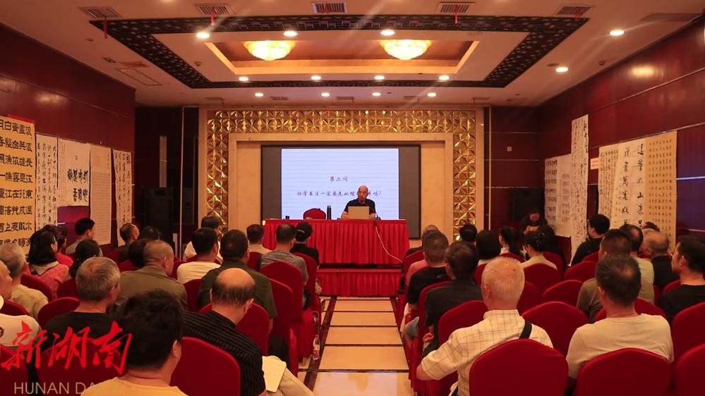 讲座上,中国书法家协会理事,湖南省书法家协会副会长、秘书长胡紫桂,结合自身经历和学习书法的过程,从书法入门、书法工具选择、选帖、笔锋调整、临摹等十二个方面对书法技法进行了逐步剖析和示范,深入浅出地引导大家书写、鉴赏书法作品,感受书法的笔意、姿态、神采和气魄。大家认真聆听讲座,纷纷表示受益匪浅,享受到了一场书法艺术的饕餮盛宴。