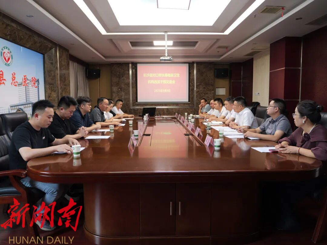 湖南日报·新湖南客户端 9月9日讯(通讯员 张芬)9月9日,长沙县对口帮扶桑植县卫生机构选派干部见面会在县总医院举行,长沙县第三轮对口帮扶桑植县乡村振兴工作组、两地卫生健康局相关负责人以及帮扶医生参加。