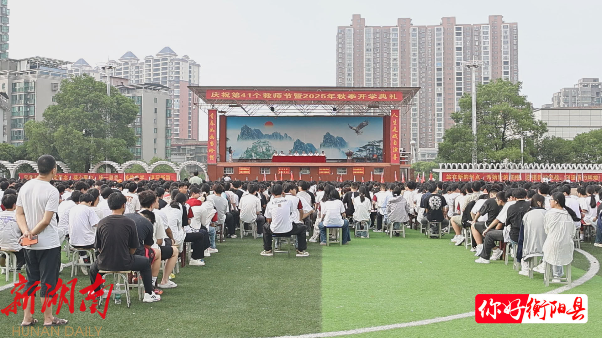 衡阳县融媒9月11日讯(记者:姚康 ) 9月10日,县三中举办庆祝第41个教师节暨2025年秋季开学典礼,全体师生齐聚一堂,开启新学期的奋斗篇章。