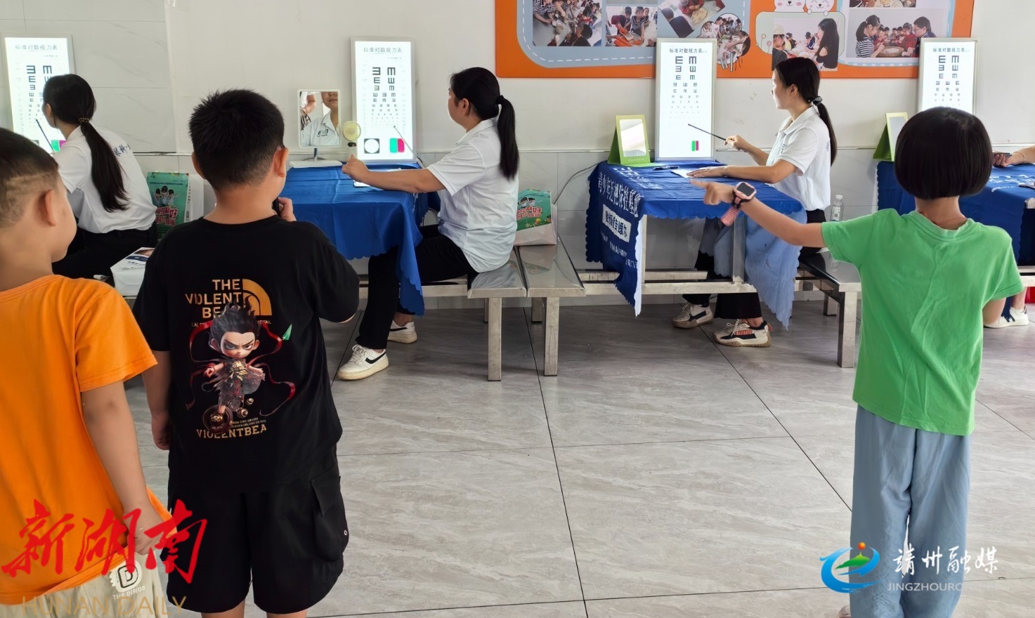 医务人员为学生检查视力情况(