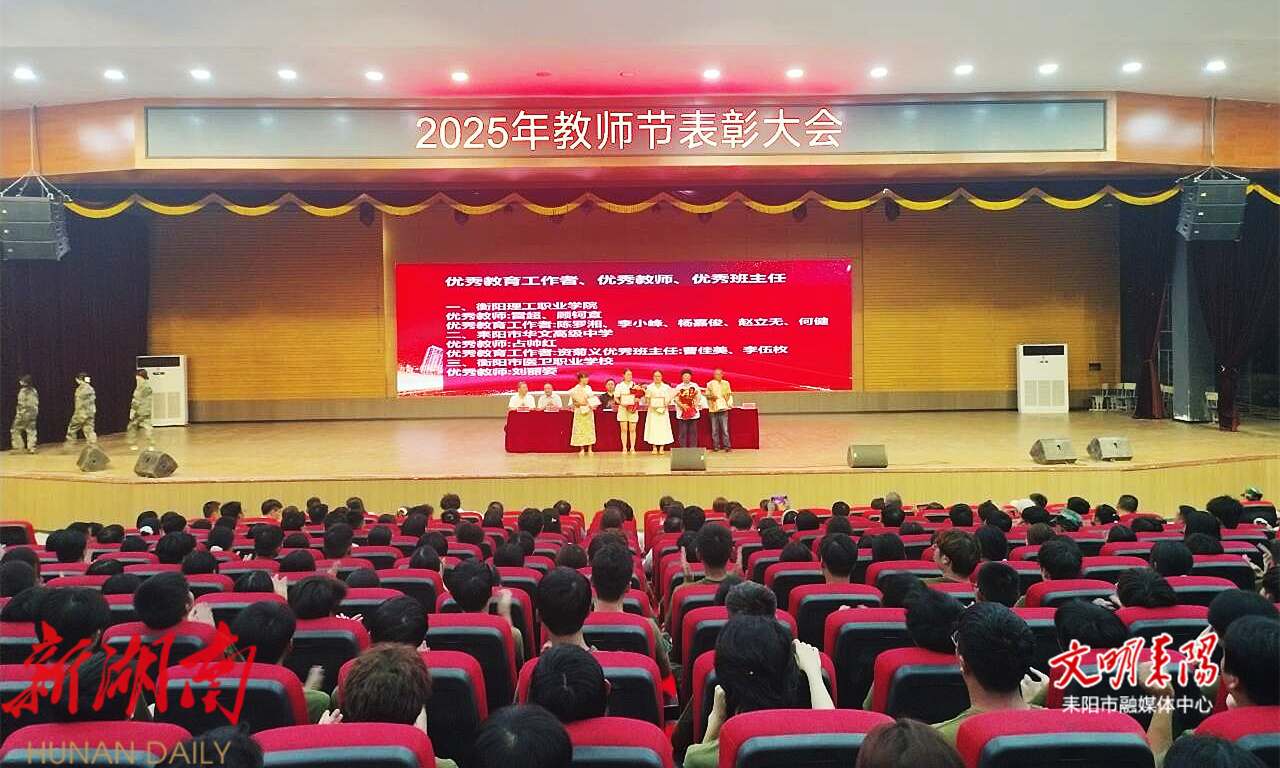 9月10日,衡阳理工职业学院教师节表彰大会在学院礼堂举行,庆祝第41个教师节,表彰过去一年里在教育工作中表现卓越的教育工作者,为学院教育事业发展注入新动力。
