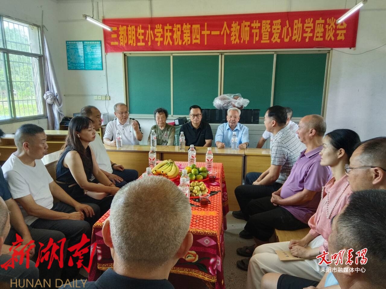 耒阳融媒9月11日讯(记者 刘喜) 9月10日,三都镇朗生小学庆祝第四十一个教师节暨爱心助学座谈会召开,市人大常委会党组书记、主任郭兴中,市政府原副市长谢儒生出席。